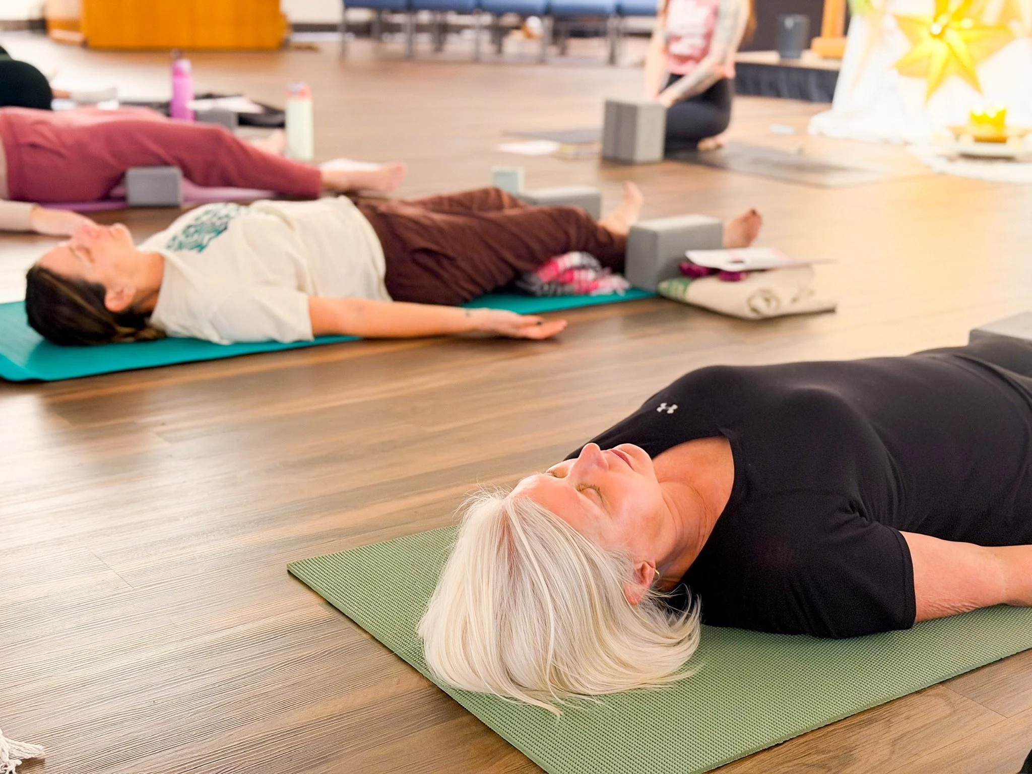 Before moving onto our mats, we made space for community building, gentle conversation, shared intention, and the kind of listening that allows strangers to quickly become companions on the journey. There was a felt sense that no one needed to arrive as anything other than who she was in that moment.